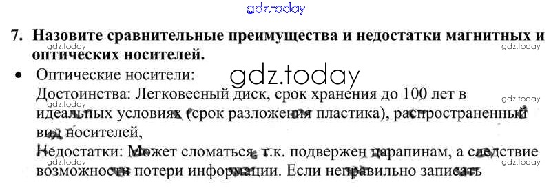 На страницах сайта gdz.today вы найдете учебный и вспомогательный материал, направленный на улучшения знаний школьной программы. ГДЗ - онлайн мир знаний Решение к §7. Хранение информации 7 Учебнику по Информатике для 10 класса Семакин, Хеннер Базовый уровень Бином 2017