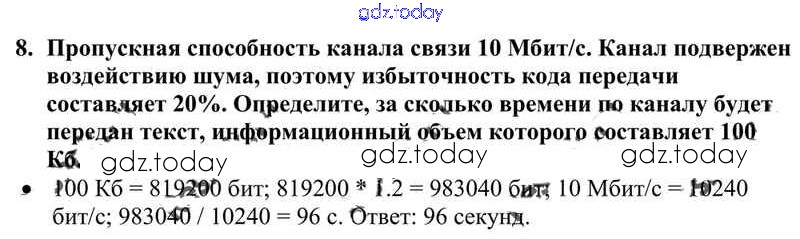 Ответы к Решение к §8. Передача информации 8 Учебнику по Информатике для 10 класса Семакин, Хеннер Базовый уровень Бином 2017