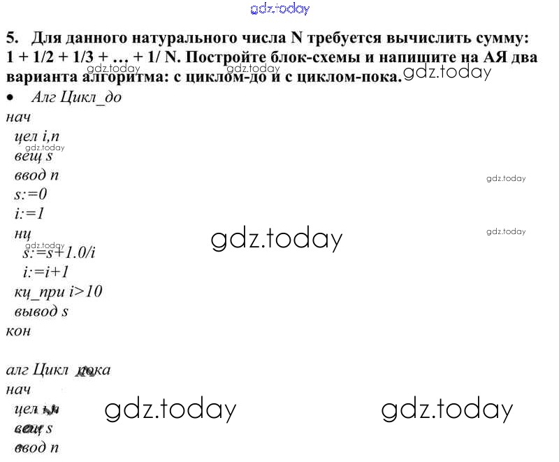 На страницах сайта gdz.today вы найдете учебный и вспомогательный материал, направленный на улучшения знаний школьной программы. ГДЗ - онлайн мир знаний Решение к §13. Структура алгоритмов 5 Учебнику по Информатике для 10 класса Семакин, Хеннер Базовый уровень Бином 2017