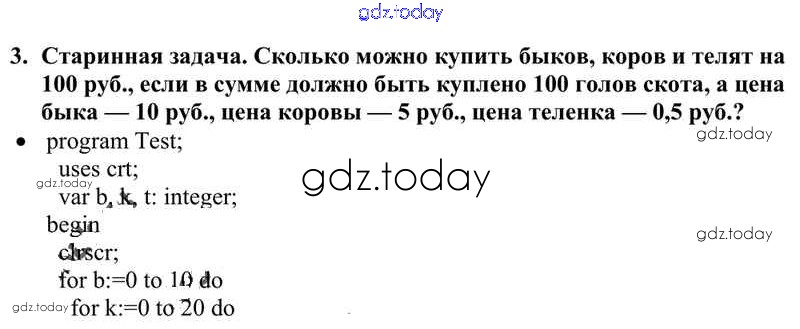 Ответы к Решение к §22. Вложенные и итерационные циклы 3 Учебнику по Информатике для 10 класса Семакин, Хеннер Базовый уровень Бином 2017