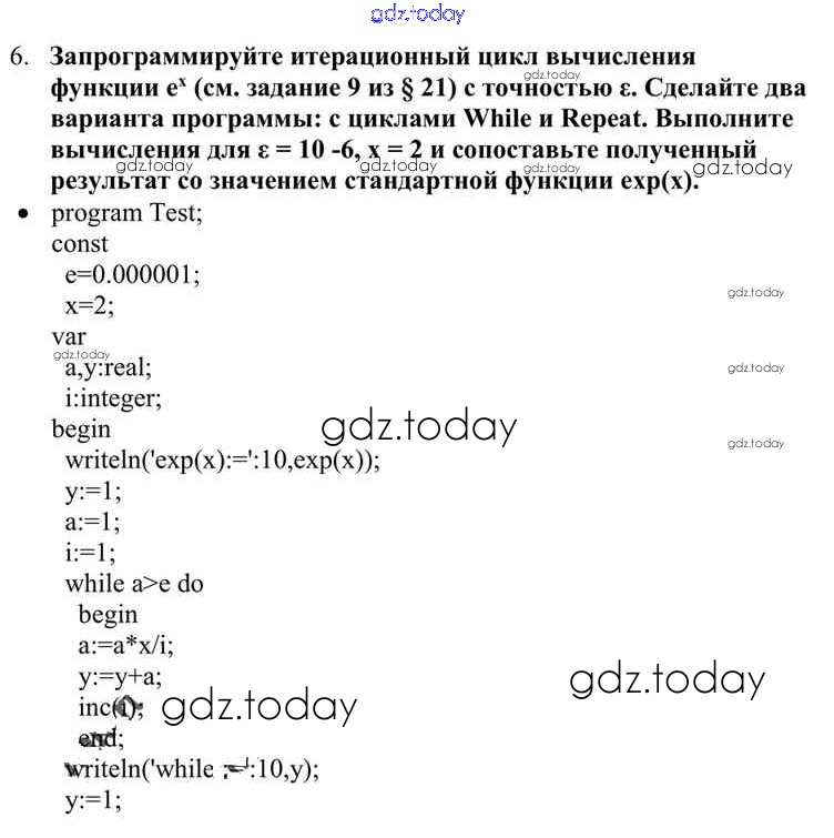 На страницах сайта gdz.today вы найдете учебный и вспомогательный материал, направленный на улучшения знаний школьной программы. ГДЗ - онлайн мир знаний Решение к §22. Вложенные и итерационные циклы 6 Учебнику по Информатике для 10 класса Семакин, Хеннер Базовый уровень Бином 2017