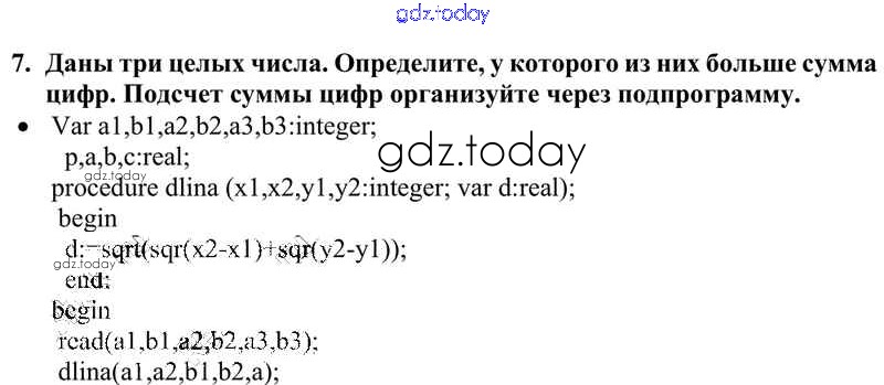 На страницах сайта gdz.today вы найдете учебный и вспомогательный материал, направленный на улучшения знаний школьной программы. ГДЗ - онлайн мир знаний Решение к §23. Вспомогательные алгоритмы и подпрограммы 7 Учебнику по Информатике для 10 класса Семакин, Хеннер Базовый уровень Бином 2017