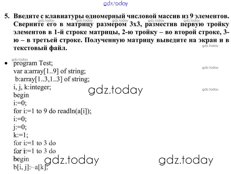 На страницах сайта gdz.today вы найдете учебный и вспомогательный материал, направленный на улучшения знаний школьной программы. ГДЗ - онлайн мир знаний Решение к §25. Организация ввода и вывода данных с использованием файлов 5 Учебнику по Информатике для 10 класса Семакин, Хеннер Базовый уровень Бином 2017
