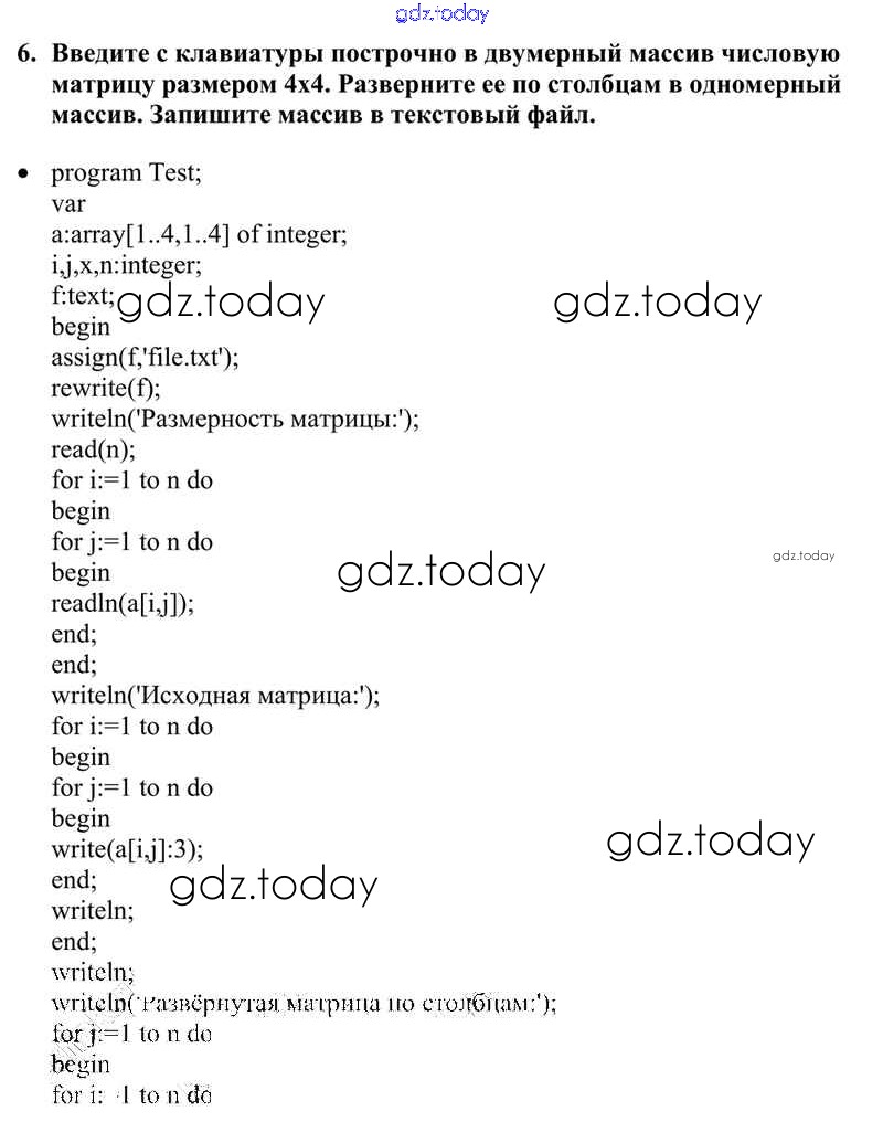 На страницах сайта gdz.today вы найдете учебный и вспомогательный материал, направленный на улучшения знаний школьной программы. ГДЗ - онлайн мир знаний Решение к §25. Организация ввода и вывода данных с использованием файлов 6 Учебнику по Информатике для 10 класса Семакин, Хеннер Базовый уровень Бином 2017