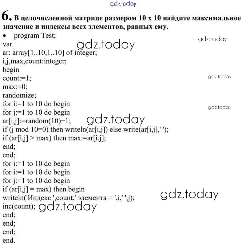 На страницах сайта gdz.today вы найдете учебный и вспомогательный материал, направленный на улучшения знаний школьной программы. ГДЗ - онлайн мир знаний Решение к §26. Типовые задачи обработки массивов 6 Учебнику по Информатике для 10 класса Семакин, Хеннер Базовый уровень Бином 2017