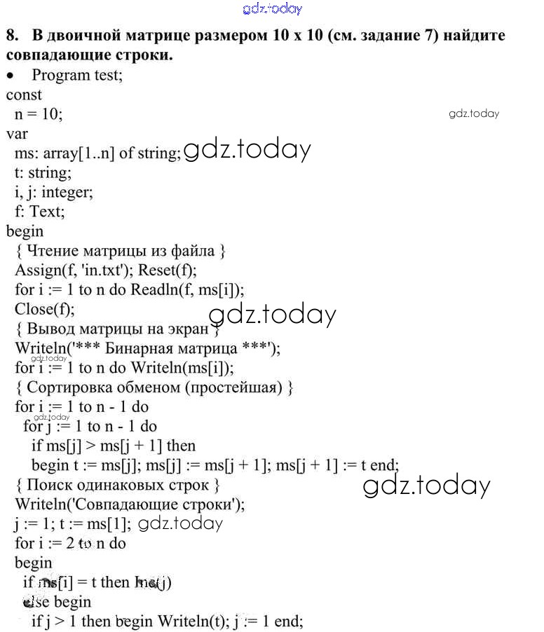 На страницах сайта gdz.today вы найдете учебный и вспомогательный материал, направленный на улучшения знаний школьной программы. ГДЗ - онлайн мир знаний Решение к §26. Типовые задачи обработки массивов 8 Учебнику по Информатике для 10 класса Семакин, Хеннер Базовый уровень Бином 2017