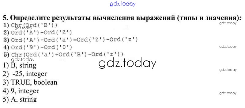 На страницах сайта gdz.today вы найдете учебный и вспомогательный материал, направленный на улучшения знаний школьной программы. ГДЗ - онлайн мир знаний Решение к §27. Символьный тип данных 5 Учебнику по Информатике для 10 класса Семакин, Хеннер Базовый уровень Бином 2017
