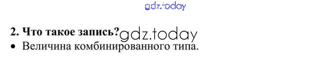 На страницах сайта gdz.today вы найдете учебный и вспомогательный материал, направленный на улучшения знаний школьной программы. ГДЗ - онлайн мир знаний Решение к §29. Комбинированный тип данных 2 Учебнику по Информатике для 10 класса Семакин, Хеннер Базовый уровень Бином 2017