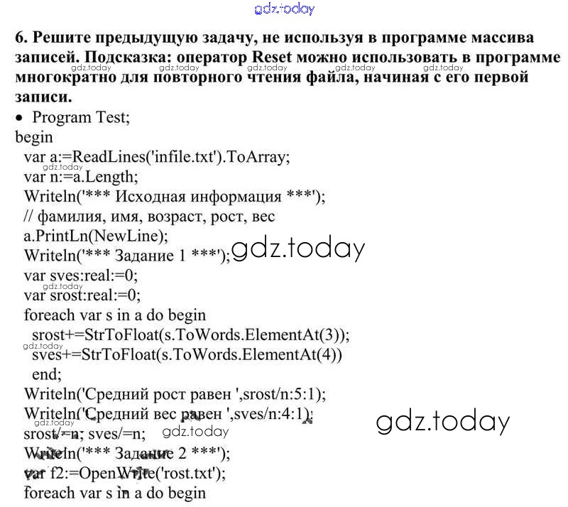 На страницах сайта gdz.today вы найдете учебный и вспомогательный материал, направленный на улучшения знаний школьной программы. ГДЗ - онлайн мир знаний Решение к §29. Комбинированный тип данных 6 Учебнику по Информатике для 10 класса Семакин, Хеннер Базовый уровень Бином 2017