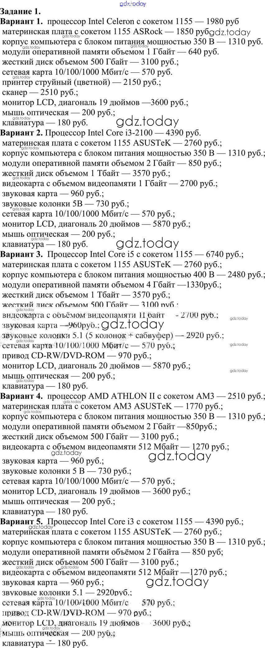 Ответы к Работа 2.3. Проектное задание. Выбор конфигурации компьютера Практические работы к главе 2 «Информационные процессы» 1 Учебнику по Информатике для 10 класса Семакин, Хеннер Базовый уровень Бином 2017