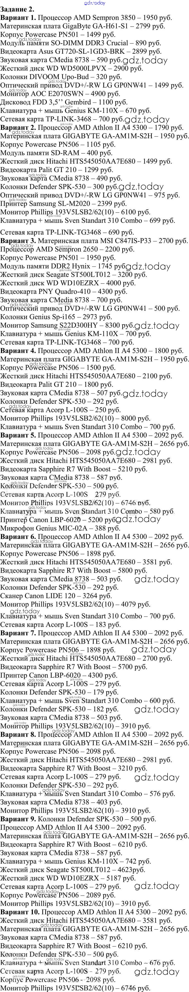 Ответы к Работа 2.3. Проектное задание. Выбор конфигурации компьютера Практические работы к главе 2 «Информационные процессы» 2 Учебнику по Информатике для 10 класса Семакин, Хеннер Базовый уровень Бином 2017