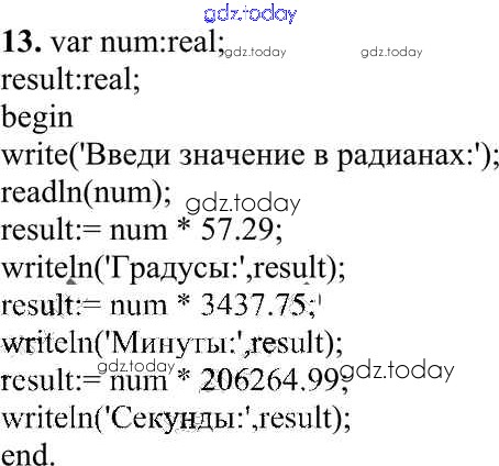 Ответы к Работа 3.1. Программирование линейных алгоритмов Практические работы к главе 3 «Программирование обработки информации» 13 Учебнику по Информатике для 10 класса Семакин, Хеннер Базовый уровень Бином 2017