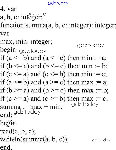 На страницах сайта gdz.today вы найдете учебный и вспомогательный материал, направленный на улучшения знаний школьной программы. ГДЗ - онлайн мир знаний Задание 1 Работа 3.3. Программирование ветвящихся алгоритмов 4 Учебнику по Информатике для 10 класса Семакин, Хеннер Базовый уровень Бином 2017
