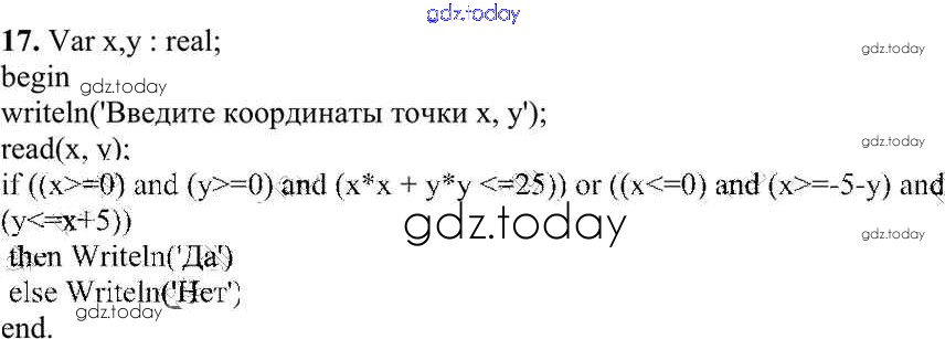 На страницах сайта gdz.today вы найдете учебный и вспомогательный материал, направленный на улучшения знаний школьной программы. ГДЗ - онлайн мир знаний Задание 2 Работа 3.3. Программирование ветвящихся алгоритмов 17 Учебнику по Информатике для 10 класса Семакин, Хеннер Базовый уровень Бином 2017