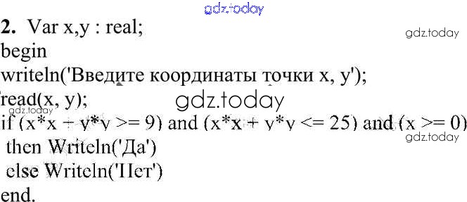 На страницах сайта gdz.today вы найдете учебный и вспомогательный материал, направленный на улучшения знаний школьной программы. ГДЗ - онлайн мир знаний Задание 2 Работа 3.3. Программирование ветвящихся алгоритмов 2 Учебнику по Информатике для 10 класса Семакин, Хеннер Базовый уровень Бином 2017