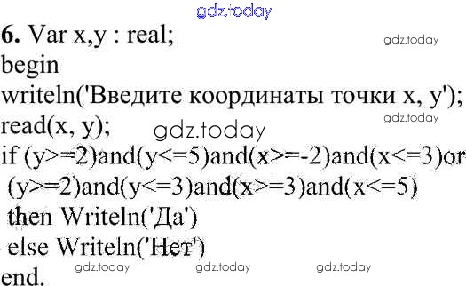 На страницах сайта gdz.today вы найдете учебный и вспомогательный материал, направленный на улучшения знаний школьной программы. ГДЗ - онлайн мир знаний Задание 2 Работа 3.3. Программирование ветвящихся алгоритмов 6 Учебнику по Информатике для 10 класса Семакин, Хеннер Базовый уровень Бином 2017