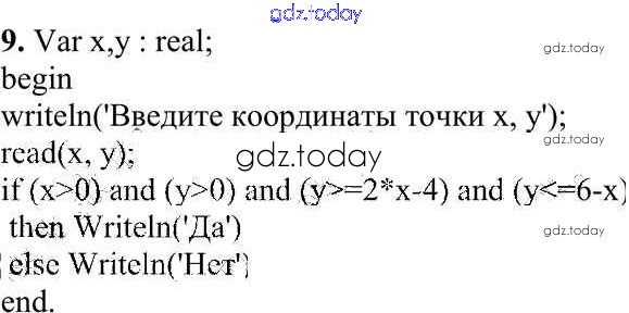 На страницах сайта gdz.today вы найдете учебный и вспомогательный материал, направленный на улучшения знаний школьной программы. ГДЗ - онлайн мир знаний Задание 2 Работа 3.3. Программирование ветвящихся алгоритмов 9 Учебнику по Информатике для 10 класса Семакин, Хеннер Базовый уровень Бином 2017