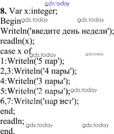 На страницах сайта gdz.today вы найдете учебный и вспомогательный материал, направленный на улучшения знаний школьной программы. ГДЗ - онлайн мир знаний Задание 3 Работа 3.3. Программирование ветвящихся алгоритмов 8 Учебнику по Информатике для 10 класса Семакин, Хеннер Базовый уровень Бином 2017