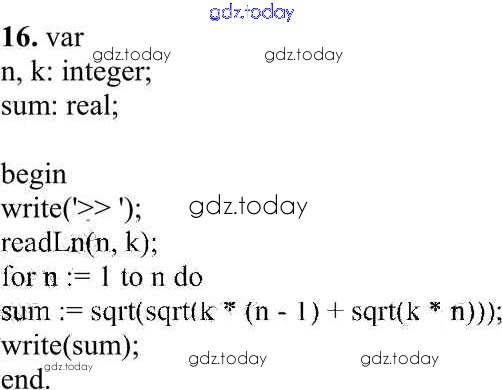 На страницах сайта gdz.today вы найдете учебный и вспомогательный материал, направленный на улучшения знаний школьной программы. ГДЗ - онлайн мир знаний Задание 1 Работа 3.4. Программирование циклических алгоритмов 16 Учебнику по Информатике для 10 класса Семакин, Хеннер Базовый уровень Бином 2017