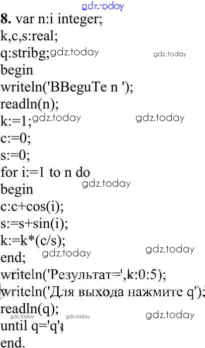 Ответы к Задание 1 Работа 3.4. Программирование циклических алгоритмов 8 Учебнику по Информатике для 10 класса Семакин, Хеннер Базовый уровень Бином 2017