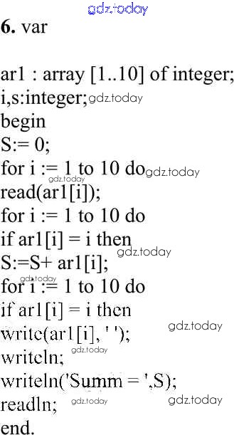 На страницах сайта gdz.today вы найдете учебный и вспомогательный материал, направленный на улучшения знаний школьной программы. ГДЗ - онлайн мир знаний Работа 3.6. Программирование обработки одномерных массивов Практические работы к главе 3 «Программирование обработки информации» 6 Учебнику по Информатике для 10 класса Семакин, Хеннер Базовый уровень Бином 2017