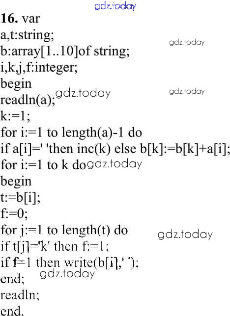 Ответы к Работа 3.8. Программирование обработки строк символов Практические работы к главе 3 «Программирование обработки информации» 16 Учебнику по Информатике для 10 класса Семакин, Хеннер Базовый уровень Бином 2017