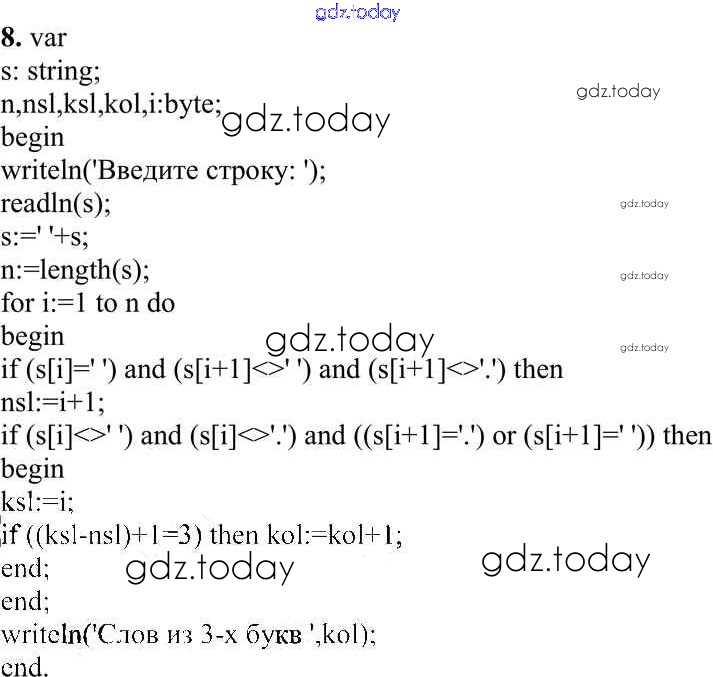 На страницах сайта gdz.today вы найдете учебный и вспомогательный материал, направленный на улучшения знаний школьной программы. ГДЗ - онлайн мир знаний Работа 3.8. Программирование обработки строк символов Практические работы к главе 3 «Программирование обработки информации» 8 Учебнику по Информатике для 10 класса Семакин, Хеннер Базовый уровень Бином 2017