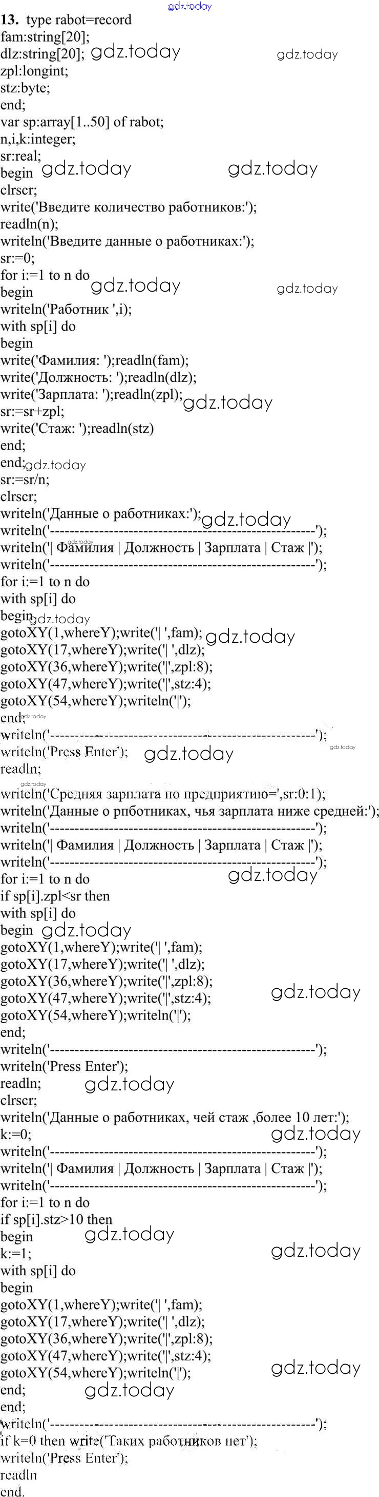 Ответы к Работа 3.9. Программирование обработки записей Практические работы к главе 3 «Программирование обработки информации» 13 Учебнику по Информатике для 10 класса Семакин, Хеннер Базовый уровень Бином 2017