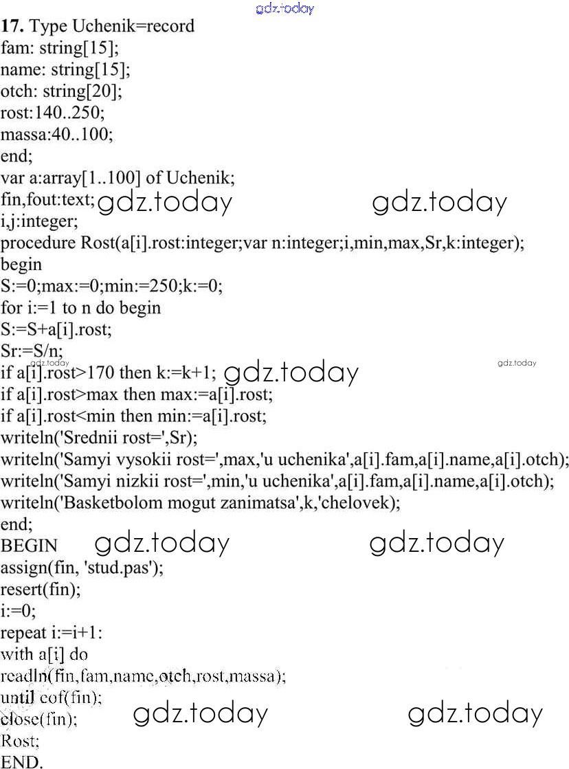 Ответы к Работа 3.9. Программирование обработки записей Практические работы к главе 3 «Программирование обработки информации» 17 Учебнику по Информатике для 10 класса Семакин, Хеннер Базовый уровень Бином 2017