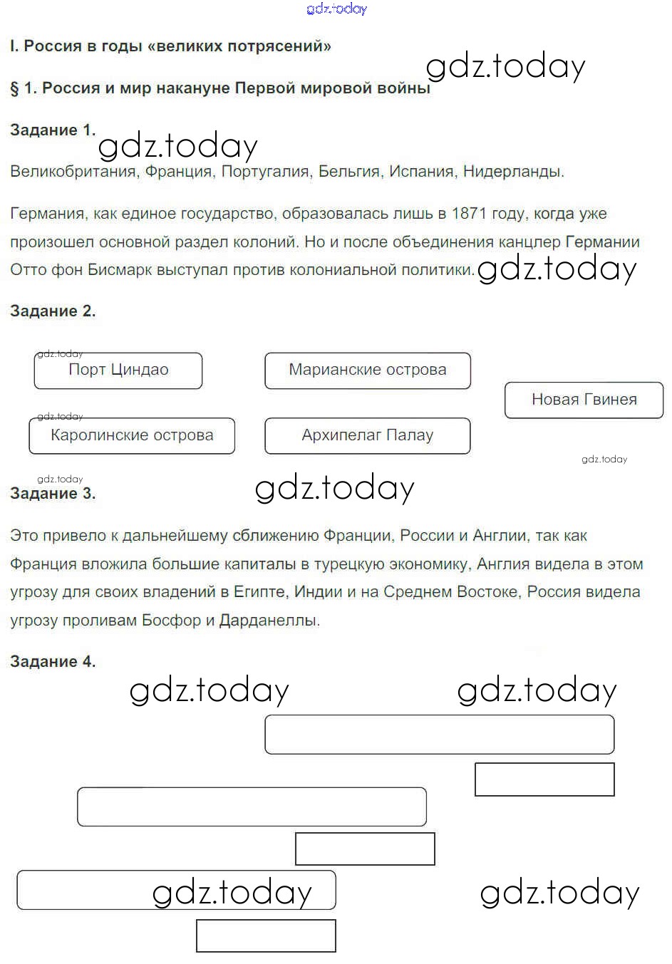 На страницах сайта gdz.today вы найдете учебный и вспомогательный материал, направленный на улучшения знаний школьной программы. ГДЗ - онлайн мир знаний Решение к части 1 (страницы) 4 Рабочей тетради по Истории России для 10 класса Чернова Экзамен УМК 2018
