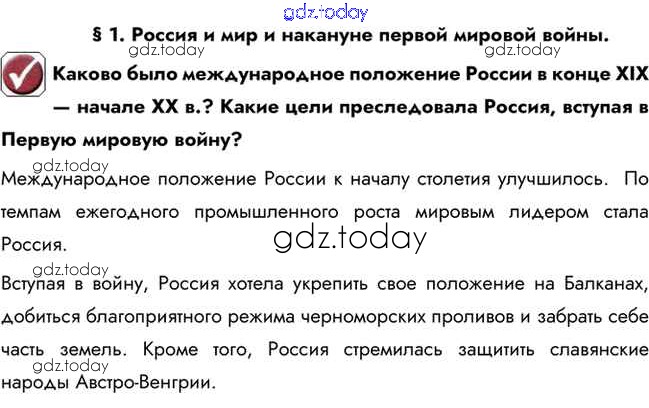 На страницах сайта gdz.today вы найдете учебный и вспомогательный материал, направленный на улучшения знаний школьной программы. ГДЗ - онлайн мир знаний Вопрос в начале параграфа Решение к §1 1 Учебнику по Истории для 10 класса Горинов, Данилов Просвещение 2016