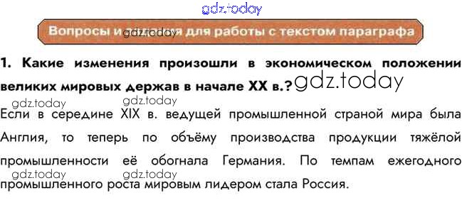 На страницах сайта gdz.today вы найдете учебный и вспомогательный материал, направленный на улучшения знаний школьной программы. ГДЗ - онлайн мир знаний Вопросы и задания для работы с текстом параграфа Решение к §1 1 Учебнику по Истории для 10 класса Горинов, Данилов Просвещение 2016