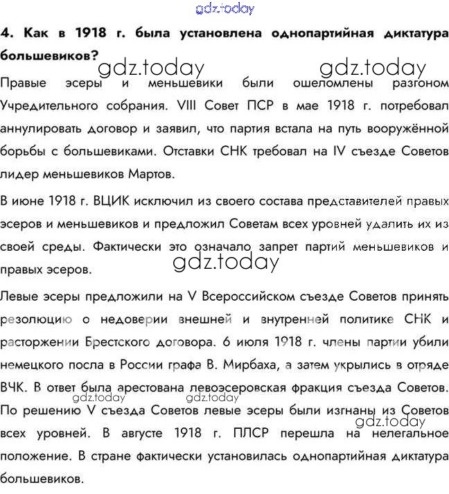 На страницах сайта gdz.today вы найдете учебный и вспомогательный материал, направленный на улучшения знаний школьной программы. ГДЗ - онлайн мир знаний Вопросы и задания для работы с текстом параграфа Решение к §7 4 Учебнику по Истории для 10 класса Горинов, Данилов Просвещение 2016