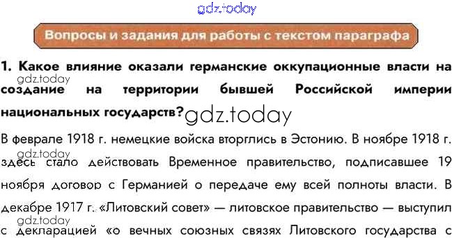 На страницах сайта gdz.today вы найдете учебный и вспомогательный материал, направленный на улучшения знаний школьной программы. ГДЗ - онлайн мир знаний Вопросы и задания для работы с текстом параграфа Революция и Гражданская война на национальных окраинах. 1 Учебнику по Истории для 10 класса Горинов, Данилов Просвещение 2016