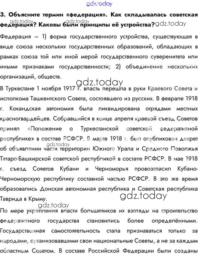 На страницах сайта gdz.today вы найдете учебный и вспомогательный материал, направленный на улучшения знаний школьной программы. ГДЗ - онлайн мир знаний Вопросы и задания для работы с текстом параграфа Революция и Гражданская война на национальных окраинах. 3 Учебнику по Истории для 10 класса Горинов, Данилов Просвещение 2016