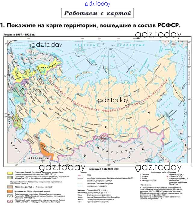 На страницах сайта gdz.today вы найдете учебный и вспомогательный материал, направленный на улучшения знаний школьной программы. ГДЗ - онлайн мир знаний Работаем с картой Революция и Гражданская война на национальных окраинах. 1 Учебнику по Истории для 10 класса Горинов, Данилов Просвещение 2016
