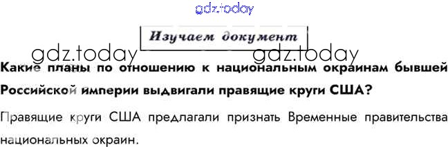 На страницах сайта gdz.today вы найдете учебный и вспомогательный материал, направленный на улучшения знаний школьной программы. ГДЗ - онлайн мир знаний Изучаем документ Революция и Гражданская война на национальных окраинах. 1 Учебнику по Истории для 10 класса Горинов, Данилов Просвещение 2016
