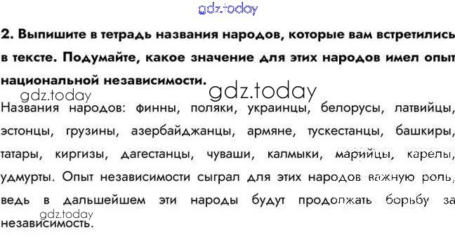 На страницах сайта gdz.today вы найдете учебный и вспомогательный материал, направленный на улучшения знаний школьной программы. ГДЗ - онлайн мир знаний Думаем, сравниваем, размышляем Революция и Гражданская война на национальных окраинах. 2 Учебнику по Истории для 10 класса Горинов, Данилов Просвещение 2016