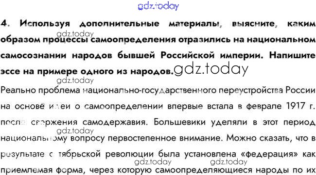 На страницах сайта gdz.today вы найдете учебный и вспомогательный материал, направленный на улучшения знаний школьной программы. ГДЗ - онлайн мир знаний Думаем, сравниваем, размышляем Революция и Гражданская война на национальных окраинах. 4 Учебнику по Истории для 10 класса Горинов, Данилов Просвещение 2016