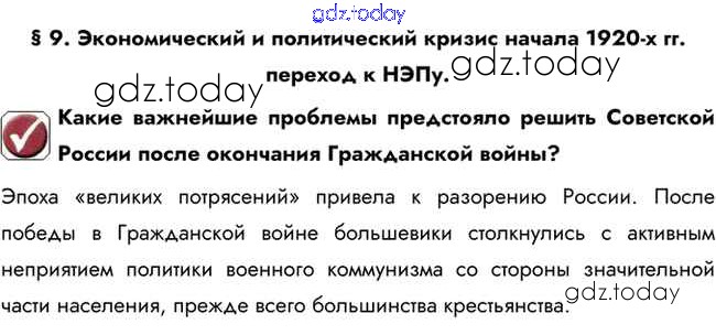 На страницах сайта gdz.today вы найдете учебный и вспомогательный материал, направленный на улучшения знаний школьной программы. ГДЗ - онлайн мир знаний Вопрос в начале параграфа Решение к §9 1 Учебнику по Истории для 10 класса Горинов, Данилов Просвещение 2016