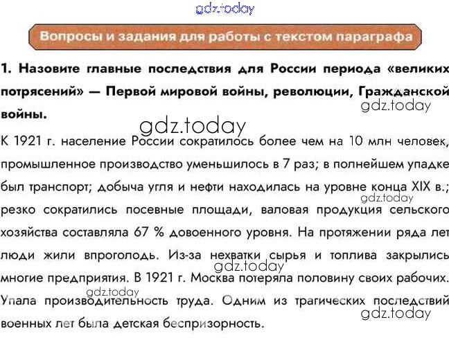На страницах сайта gdz.today вы найдете учебный и вспомогательный материал, направленный на улучшения знаний школьной программы. ГДЗ - онлайн мир знаний Вопросы и задания для работы с текстом параграфа Решение к §9 1 Учебнику по Истории для 10 класса Горинов, Данилов Просвещение 2016