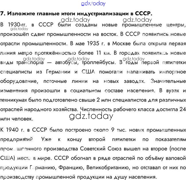 На страницах сайта gdz.today вы найдете учебный и вспомогательный материал, направленный на улучшения знаний школьной программы. ГДЗ - онлайн мир знаний Вопросы и задания для работы с текстом параграфа Решение к §15 7 Учебнику по Истории для 10 класса Горинов, Данилов Просвещение 2016