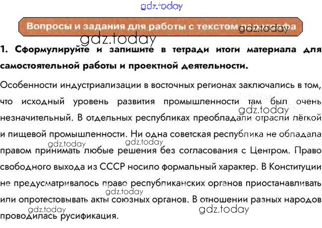 На страницах сайта gdz.today вы найдете учебный и вспомогательный материал, направленный на улучшения знаний школьной программы. ГДЗ - онлайн мир знаний Вопросы и задания для работы с текстом параграфа Советская национальная политика в 1930-е гг. 1 Учебнику по Истории для 10 класса Горинов, Данилов Просвещение 2016