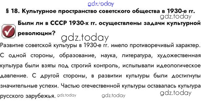 На страницах сайта gdz.today вы найдете учебный и вспомогательный материал, направленный на улучшения знаний школьной программы. ГДЗ - онлайн мир знаний Вопрос в начале параграфа Решение к §18 1 Учебнику по Истории для 10 класса Горинов, Данилов Просвещение 2016