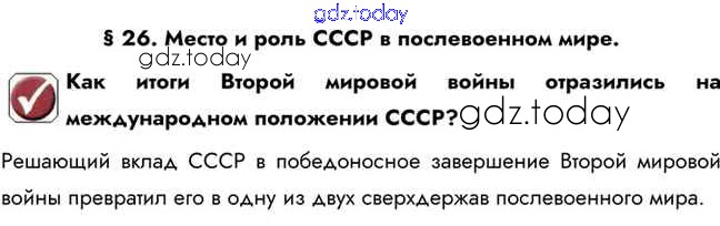 На страницах сайта gdz.today вы найдете учебный и вспомогательный материал, направленный на улучшения знаний школьной программы. ГДЗ - онлайн мир знаний Вопрос в начале параграфа Решение к §26 1 Учебнику по Истории для 10 класса Горинов, Данилов Просвещение 2016