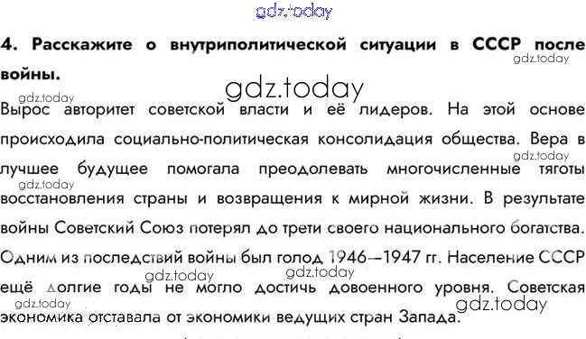 На страницах сайта gdz.today вы найдете учебный и вспомогательный материал, направленный на улучшения знаний школьной программы. ГДЗ - онлайн мир знаний Вопросы и задания для работы с текстом параграфа Решение к §26 4 Учебнику по Истории для 10 класса Горинов, Данилов Просвещение 2016