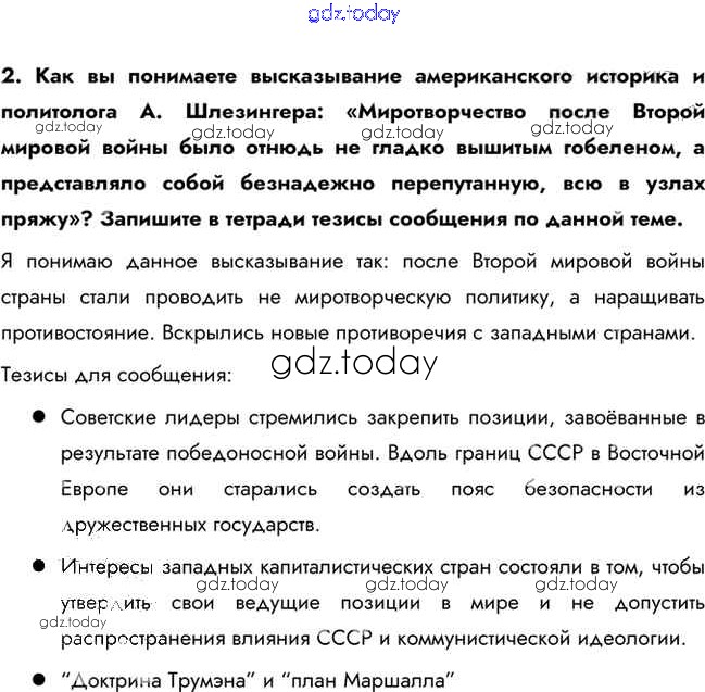 На страницах сайта gdz.today вы найдете учебный и вспомогательный материал, направленный на улучшения знаний школьной программы. ГДЗ - онлайн мир знаний Думаем, сравниваем, размышляем Решение к §26 2 Учебнику по Истории для 10 класса Горинов, Данилов Просвещение 2016