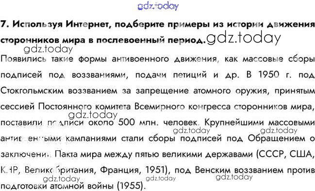 На страницах сайта gdz.today вы найдете учебный и вспомогательный материал, направленный на улучшения знаний школьной программы. ГДЗ - онлайн мир знаний Думаем, сравниваем, размышляем Решение к §26 7 Учебнику по Истории для 10 класса Горинов, Данилов Просвещение 2016