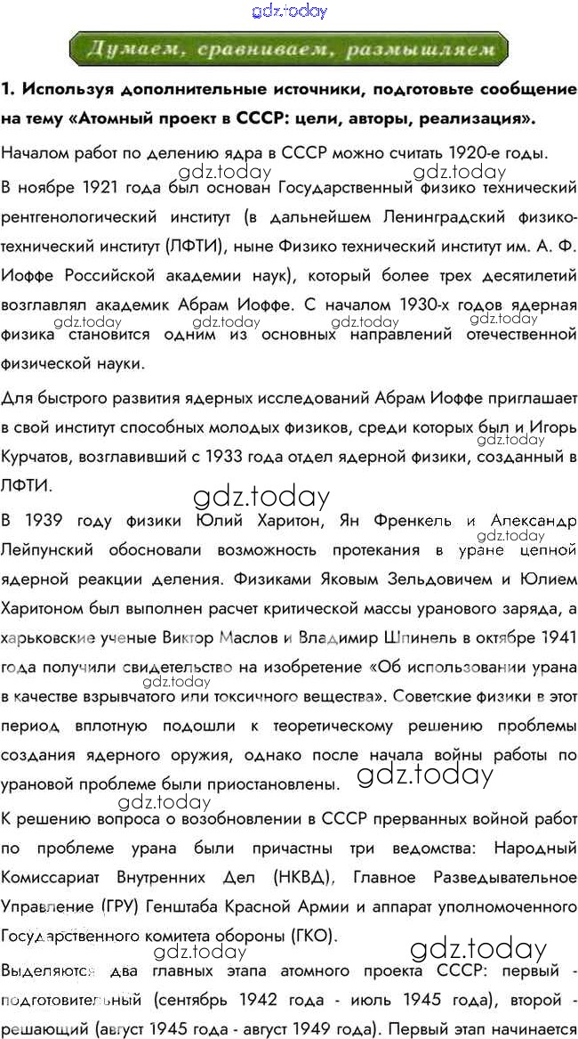На страницах сайта gdz.today вы найдете учебный и вспомогательный материал, направленный на улучшения знаний школьной программы. ГДЗ - онлайн мир знаний Думаем, сравниваем, размышляем Решение к §27 1 Учебнику по Истории для 10 класса Горинов, Данилов Просвещение 2016