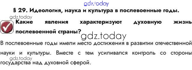 На страницах сайта gdz.today вы найдете учебный и вспомогательный материал, направленный на улучшения знаний школьной программы. ГДЗ - онлайн мир знаний Вопрос в начале параграфа Решение к §29 1 Учебнику по Истории для 10 класса Горинов, Данилов Просвещение 2016